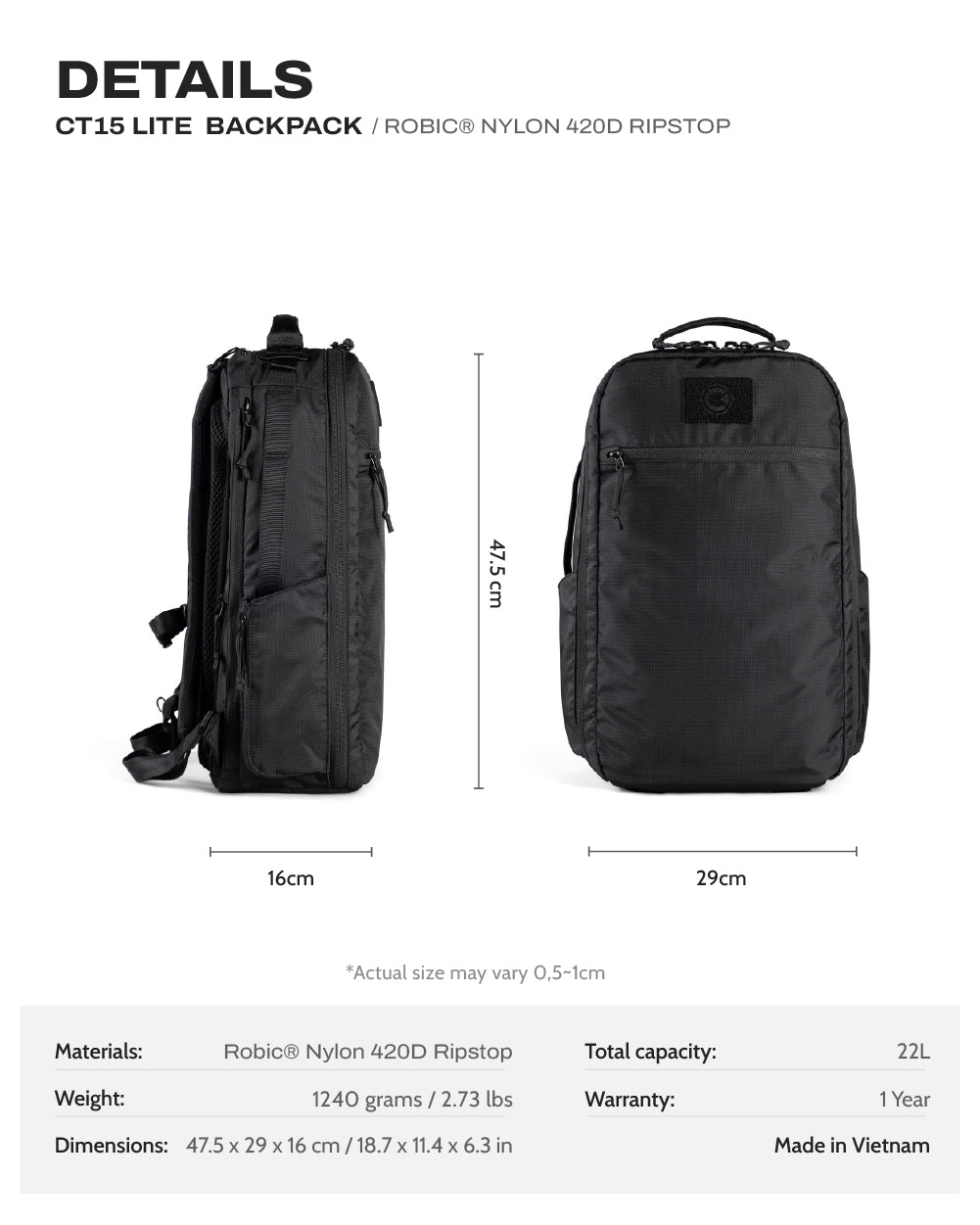 CT15 Lite Backpack - ROBIC® Nylon 420D Ripstop