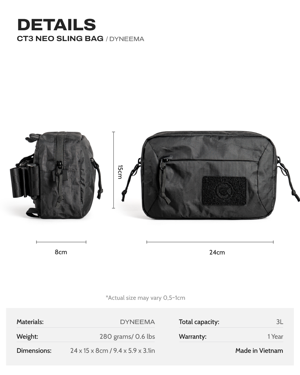 The CT3 Neo is a streamlined version of the CT3 V2.0 EDC bag. This version is for those who love compactness and the harmonious combination of strong style and practicality.