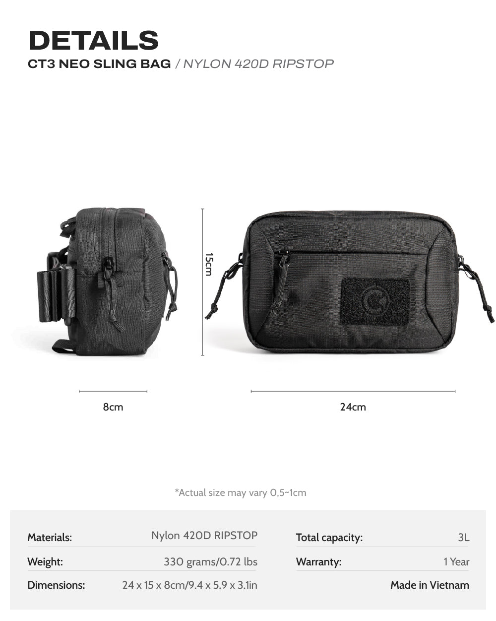 The CT3 Neo is a streamlined version of the CT3 V2.0 EDC bag. This version is for those who love compactness and the harmonious combination of strong style and practicality.